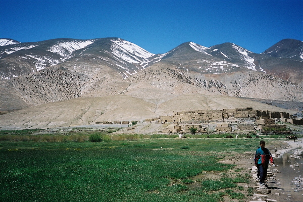 Sous le signe du vent d'ouestChaînes montagneuses et vallées sont orientées globalement est-ouest, donc rien ne l'arrête. Il nous a apporté la pluie, la neige, la grêle, le grésil, nous a évité d'avoir trop chaud les jours de soleil. Enfin bref, un compagnon fidèle, sur qui on a pu compter au quotidien. Grands espacesLarges et longues vallées, creusées par la houe de Titan de glaciers oubliés, dont seul subsiste le maigre oued qui se perd dans son lit de pierraille. Vastes plateaux battus par les vents où l'herbe se couche et ondule et se moire de verts et de gris. Chaînes montagneuses aux cimes enneigées qui s'enchaînent, derrière la crête une autre crête, et si haut que l'on aille, on n'en voit pas le bout, on n'en épuise pas la succession d'horizons toujours plus bleus, jusqu'à se fondre dans le bleu du ciel. Et perdus dans ce chaos hostile, acagnardés au fond de ces vallées farouches, les villages des hommes parsèment l'immensité sauvage d'autant d'oasis d'humanité. |
